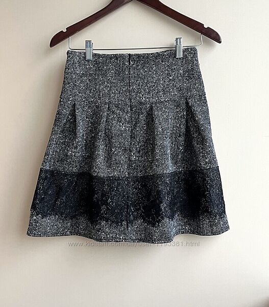 Сіра спідниця кльош з мереживом серая юбка клеш с кружевом