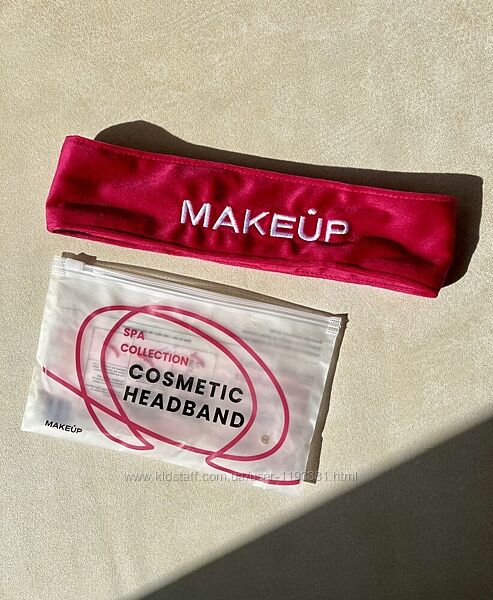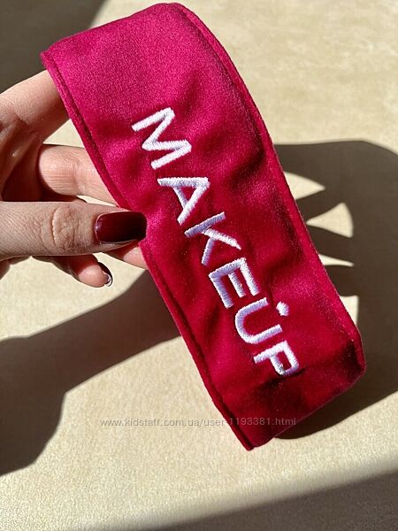 Косметична пов´язка на голову на липучках рожева оксамитова makeup