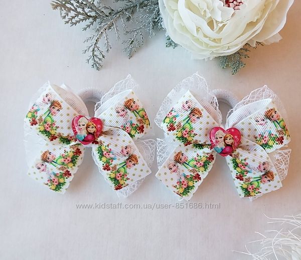 Бантики резинки заколки с Анной Эльзой Холодное сердце, банти крижане серце