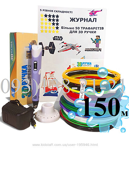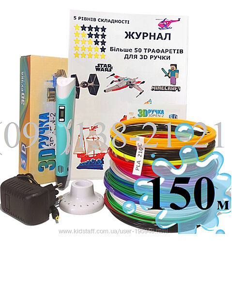 3D-ручка - это гаджет, который навсегда изменил представление о том, что такое "рисование". Простота конструкции, стоимость и надежность являются основными преимуществами, по сравнению с другими моделями. Гаджет оборудован ЖК дисплеем, на который выводятся текущие температурные параметры и режим выбора пластика (ABS или PLA), благодаря чему, данная 3D ручка позволяет использовать любые из представленных сегодня на рынке 3Д моделирования, пластик с диаметром кабеля 1,75 мм. Основой материала, из которого сделаны наполнители к 3D ручки, является кукурузный крахмал и сахарный тростник. Это экологически безопасный материал, он абсолютно нетоксичен. Обновленный новый набор с большим журналом трафаретов. В журнале более 50 трафаретов, 20 страниц формата А4, собрано 5 уровней сложности, для разного возраста детей, для мальчиков и девочек. В трафаретах присутствует описание техник моделирования с иллюстрациями, а также текстовые инструкции на украинском языке к сложным моделям.