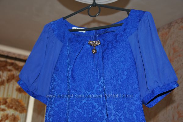 Предлагаю своё платье фирмы Алва, написан размер 50, но ка-то маловато , цвет насыщенный электрик. Ткань жаккард (немного тянется), рукав шифон. В отличном состоянии, одевалось один раз на торжество.
