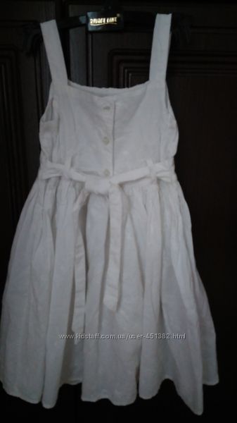 сарафан girl2girl. Указан возраст 4-5 лет (рост 110 см). Мы еще в 6 лет носили. 100% хлопок. На ткани машинная вышивка белой нитью. Есть подкладка и подъюбник. Сзади застегивается на пуговки. Недостаток: внутри немного разорвалась подкладка - показала на фото. Больше недостатков не нашла. Замеры: ПО талии 29 см (завышена), ПО под мышками 30 см, длина по спинке 65 см.Отправлю Новой или укрпочтой за Ваш счет. Товар обмену и возврату не подлежитДругие объявления продавца