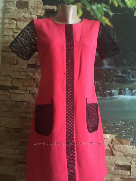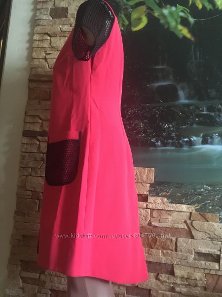 Стильное, красивое платье.Коралловое платье с вставками из черной сетки.
