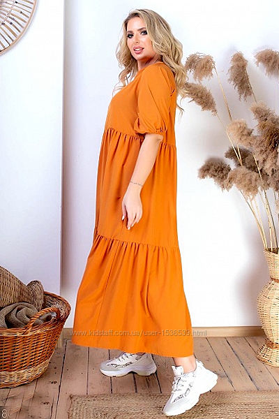 Великолепное платье для лета В размерах 52-54,(замеры в размере 52-54 -полу обхват , грудь 62 см,длина 127см) Ткань софт, немного тянется, тонкая, не просвечивается ,цвет насыщенный матовый красивый, в жару холодит ,не парит!!! Рукав позволяет закрыть проблемные места руки.Пошив молодит , скрывает недостатки, подчеркивает достоинства. Пошив свободный в стиле бохо.