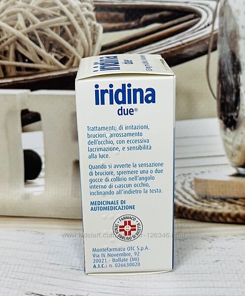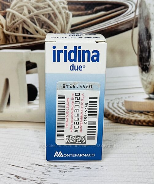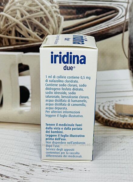 Ірідіна - м´які щадні краплі для очей від італійських виробників. Це повністю безпечний засіб, до складу якого входить нафазолін гідрохлорид, що усуває всі симптоми «хворого та втомленого» ока. А аква-дистилятори таких рослин як гамамеліс і ромашка, мають на очі свою корисну дію заспокійливим ефектом.