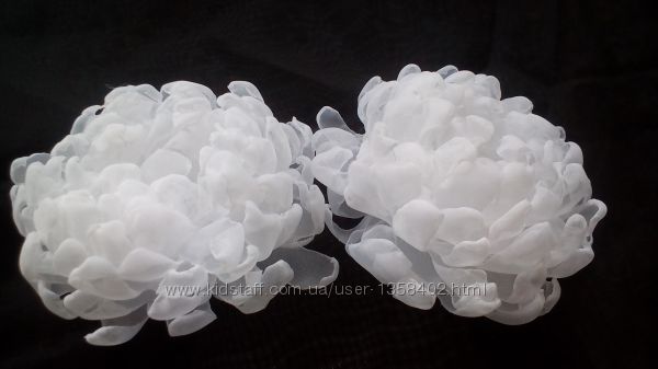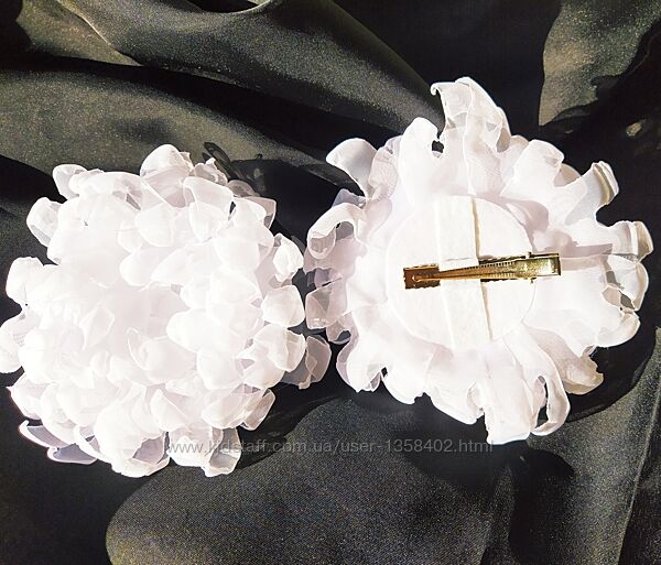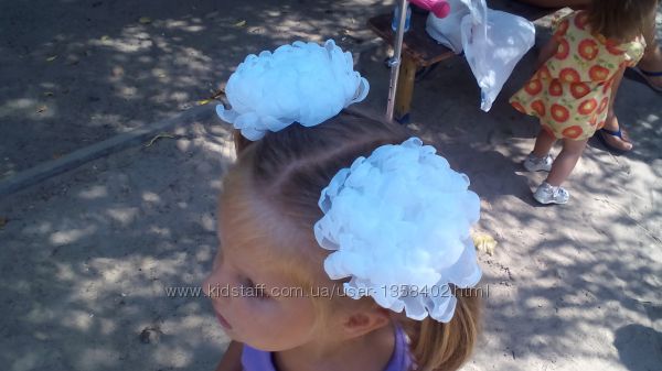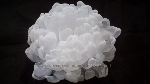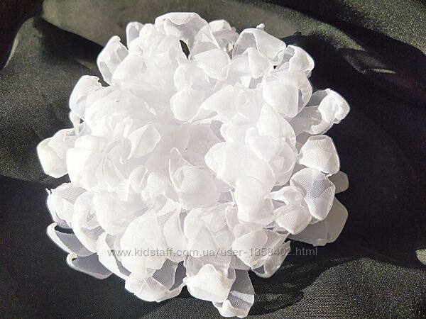 Авторская белоснежная ручной работы резинка "Хризантема". Прекрасный эксклюзивный аксессуар на 1 сентября вместо простых школьных бантов. Выполнен из шифона и атласных лент. Все листики и лепесточки выполнены только вручную. Такие украшения способны превратить повседневный наряд в праздничной)) Диаметр цветка 12 см, цена за 1шт.Возможно изготовление в другом цвете, а также в виде заколки или обруча (+10 грн)