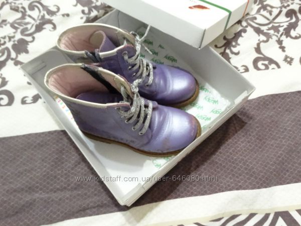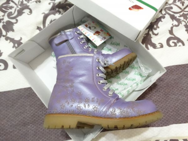 Ортопедические ботинки WOOPY демисезонные, кожа внутри и снаружи. Очень красивые фиолетового с перламутром цвета. Размер 29 по стельке 19 см. Совсем немного сбит носочек. Просто сдерся цвет.