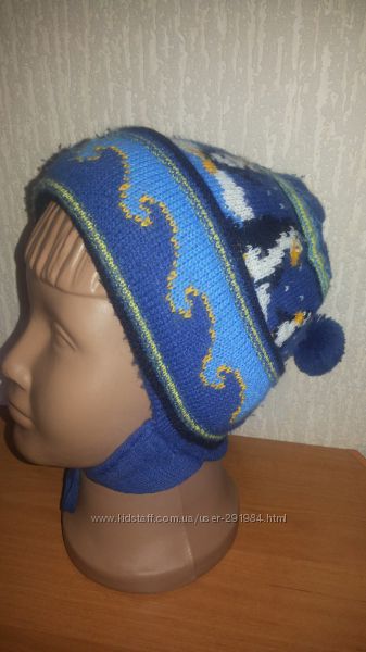 Пропоную зимові шапочки в ідеальному стані після однієї дитини:фото 2: синя шапка з пінгвінами на 2-3 роки.