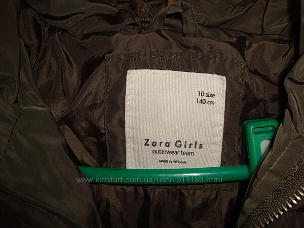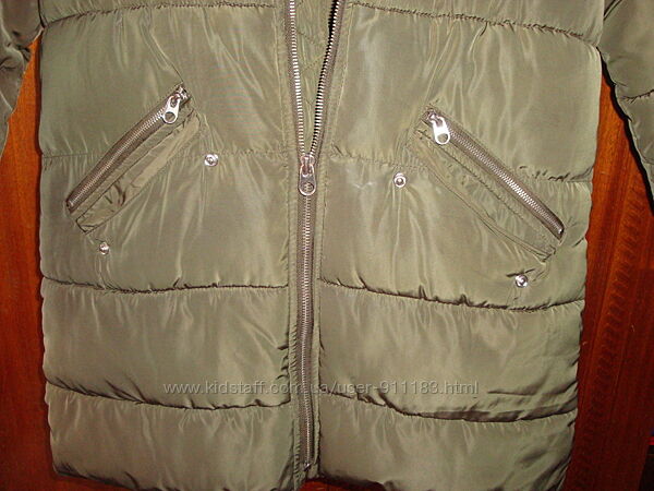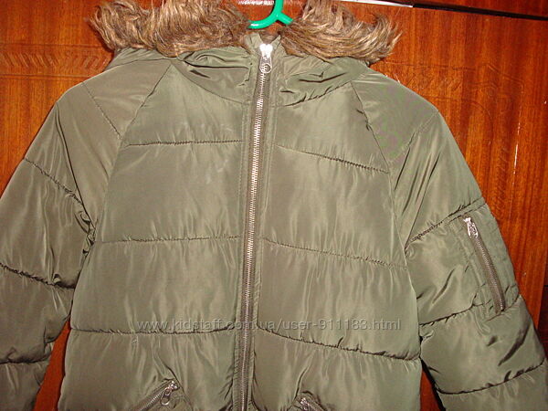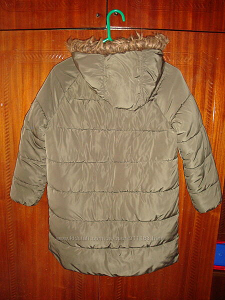 Зимняя куртка-пальто на девочку Зара, р.10(140) бу Цвет оливковый, на молнии, капюшон не отстегивается, мех искуственный. По 2 кармана с каждой стороны - всего 4 кармана(1 на кнопках и 1 на молнии), я маленький карман на рукаве. Наполнитель не пух, можно стирать. длина от шеи - 72 см, сзади 75 см. рукав от шеи - 58 см ширина(по подмышкам) - 48 см ПОТ - 49 см ширина по низу - 51 см. Оплата на карту Приватбанка 100%. Доставка Укрпочта, Новая почта, обмена нет.