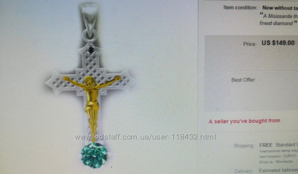 Подробное описание: Кулон - крест . 925 проба . Муассанит и бриллиант VVS1