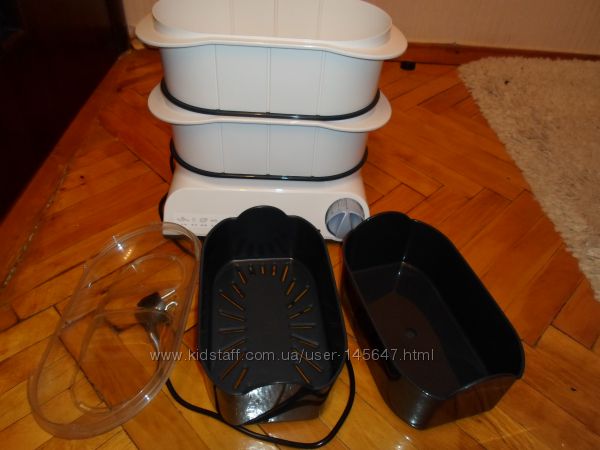 Очень качественная пароварка в хорошем состоянии. Пользовалась мало,нет ни царапин не накипи на нагревательном элементе. На одном контейнере немного изменен цвет, видно на фото так как забыла взять специальную колбу для моркови. Думала ребенок будет есть овощи на пару, не захотел, муж тоже не сильно рад здоровой пище, приходится продавать.Другие объявления продавца