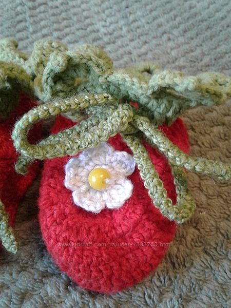 Пинетки вязаные Клубничка. По стельке 11 см.097 451 88 57