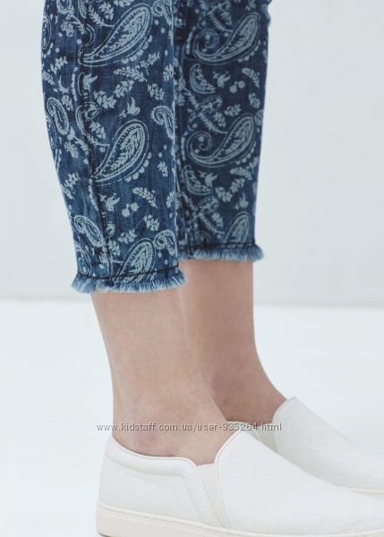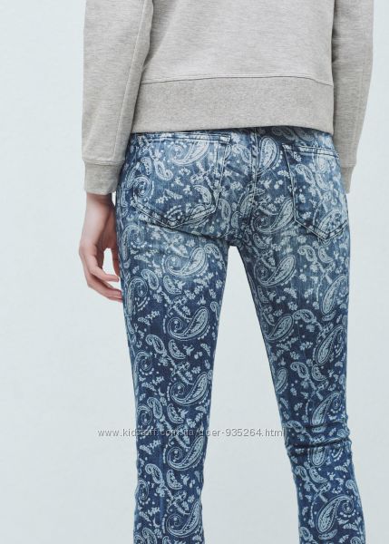 Стильные женские джинсы от Mango (Испания). Всегда актуальный принт "огурцы"!! Модель Skinny. Классические пять карманов. Пуговица и заклепки с фирменным логотипом Mango. Очень модный в этом сезоне необработанный низ. Отличное качество!!Состав: 97% хлопок, 3% эластан. Размеры в наличии: