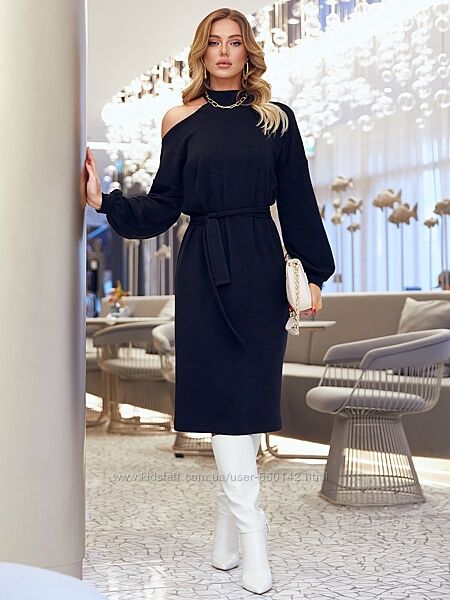 Подробное описание: Платье миди из ангоры с открытым плечом