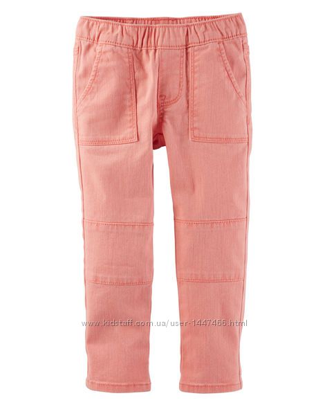 Джегинсы / джинсы / брюки для девочек от OshKosh B´gosh (ОшКош Бигош) .Джегинсы выполнены с большими накладными карманами и дополнительными отстроченными вставками на коленях. За счет добавленного эластана в состав джегинсов, они хорошо тянутся и будут легко одеваться. Брючки без молнии; пояс выполнен на эластичной резинке и будет комфортно держаться на линии талии, не давая джинсам сползти вниз.