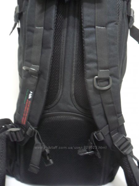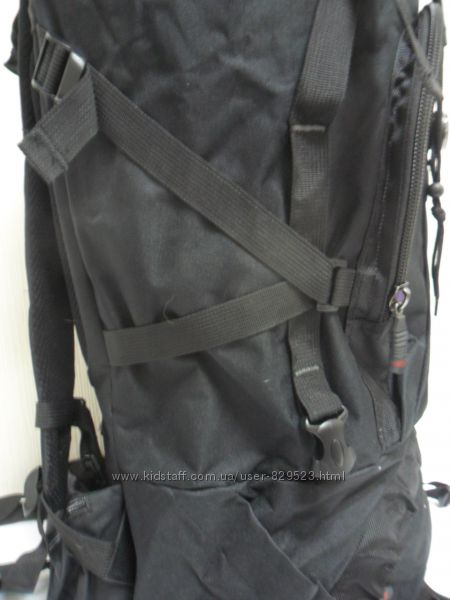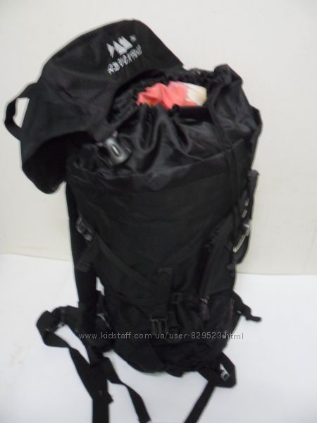 Повышенной плотности ткань с пропиткой и дополнительным влагозащитным покрытием изнутри. Основное большое отделение на двух шнуровках (на расстоянии 10 см. друг от друга), сверху накрывается клапаном (крышкой), в котором расположен отдел на молнии. Внутри основного отделения с помощью молнии и перегородки можно сделать двойное дно, на расстоянии 20 см. от низа рюкзака, и в нижней части рюкзака будет второе, отдельное, отделение для обуви на молнии. Долговечные молнии с широкими бегунками.