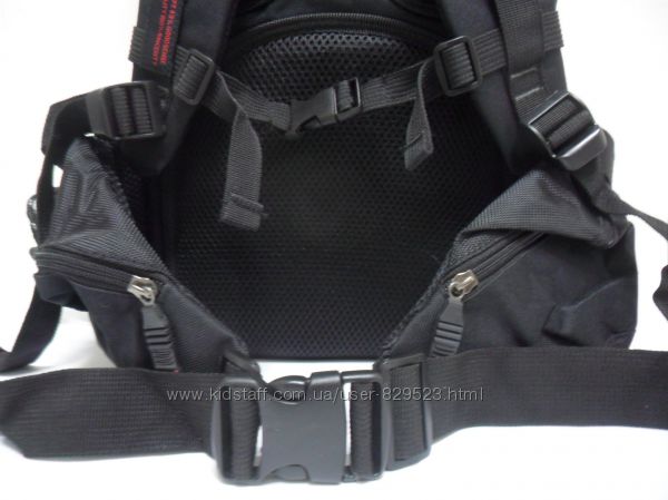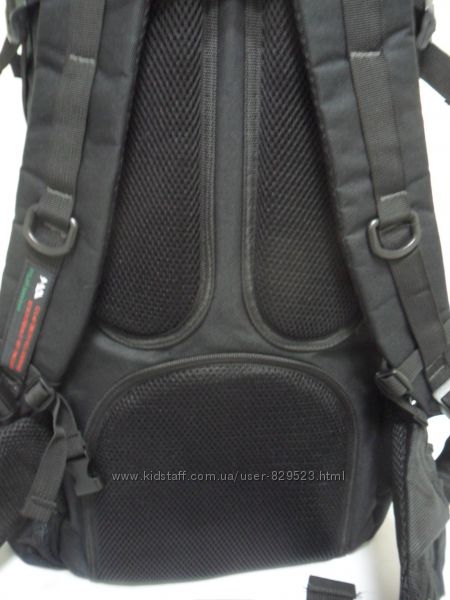 Спина уплотненная, частично с сеточкой, с двумя внутренними съемными жесткими пластиковыми пластинами, которые вставляются в два продольных узких кармана на липучке. Размеры пластин: 50.5 х 3.5 х 0.6 см.