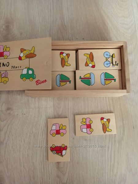 В детском варианте взрослой игры Домино использованы рисунки различных видов транспорта: самолет, велосипед, машинки, кораблик. Очень приятное на ощупь дерево развивает мелкую моторику ребенка и учит искать одинаковые предметы!