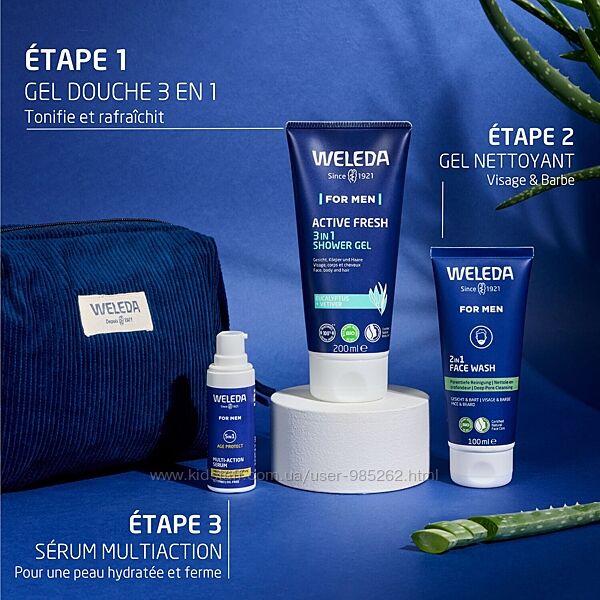 *🎁Подарунковий набір для чоловіків для щоденного догляду від Weleda в наявності!* Це набір, що містить 3 основних засоби догляду та гігієни, які відповідають особливим вимогам чоловічої шкіри.*💙1. Weleda Homme 5in1 Anti-Aging Multi-Action Serum 30ml - багатофункціональна сироватка проти старіння на основі антиоксидантних екстрактів терну, гранатового соку та алое вера.* ✅Виконує 5 дій:
