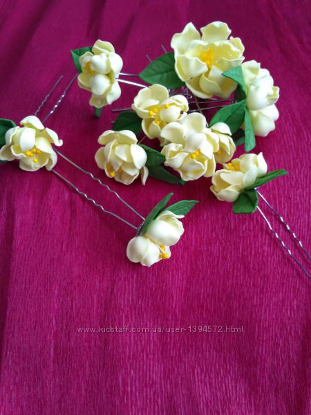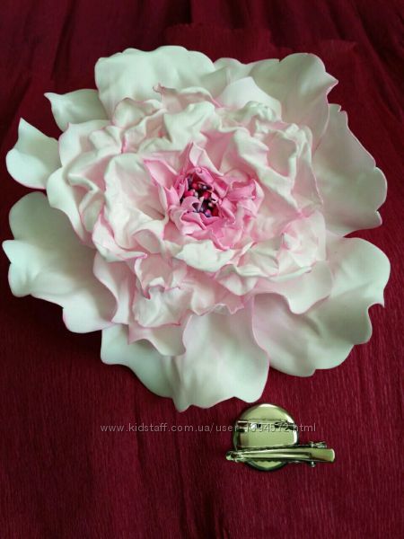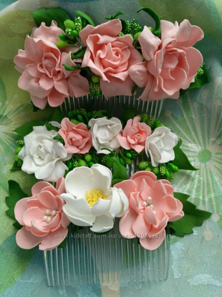 Прикраси для волосся ручної роботи виконанні з фоамірану. Квіти не втрачають свою форму, колір, витривалі до дії води. Є готові вироби та можна зробити на замовлення. Ціна залежить від складності роботи та затрачених матеріалів. Гребінці в готовому вигляді 10см. Піон в діаметрі до 14см. Шпильки для волосся: ціна вказана з 10шт. (можна виконати в іншому кольорі).Доставка за рахунок покупця. Відправка відразу ж після оплати. Оплата 100 %на карту Приват банка. Доставка можлива нп та Укрпошта.