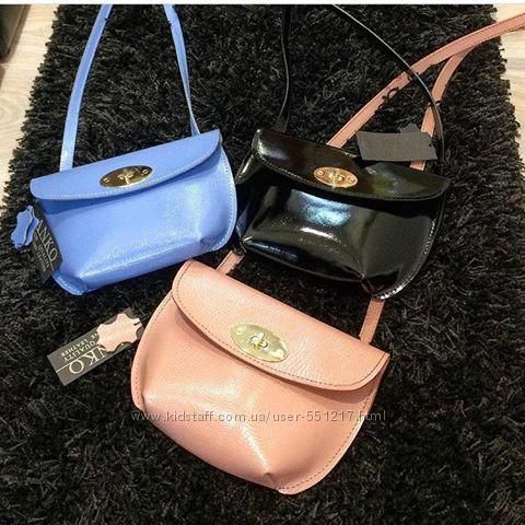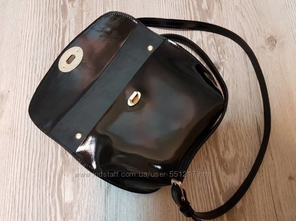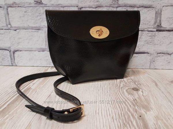 Сумочка закрывается на поворотный замок. Содержит одно основное отделение без подклада.