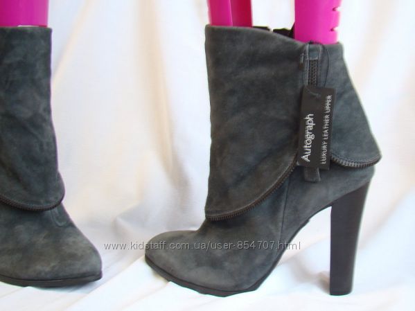 Сапоги женские демисезонные замшевые серые полусапожки на каблуке Atmosphere (размер 34,5)Натуральная замша. Подкладка трикотажная.