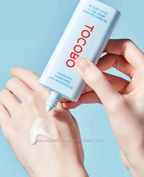 Легка текстура TOCOBO Bio Watery Sun Cream SPF50+ швидко вбирається та не залишає липкості. Формула допомагає водний та жировий шар, забезпечує надійний захист від сонячних променів.