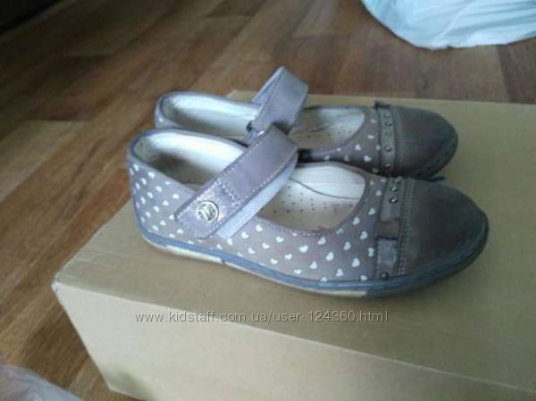 Кожаные туфельки для девочки в хорошем состоянии. Верх - нубук, стелька - кожа. На пяточках - набойки. Отличный вариант для школы.Предложения Premium магазинов