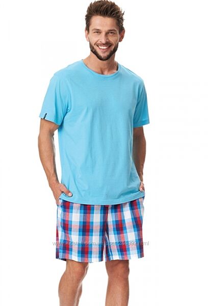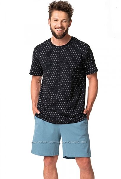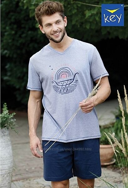 Мужская пижама от ТМ Key. Пижама выполнена из высококачественного натурального хлопка, состоит из однотонной футболки и свободных прямых шорт в крупную сине-белую клетку. Мужская пижама KEY – это воплощение домашнего комфорта и заботы. Мужчина в этой пижаме будет чувствовать себя свободно, уютно и тепло. Состав : 100% хлопок Производитель : KEY, Польша.