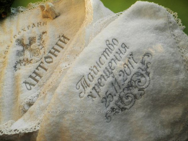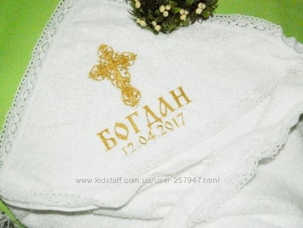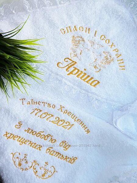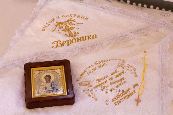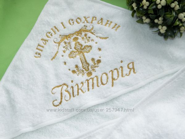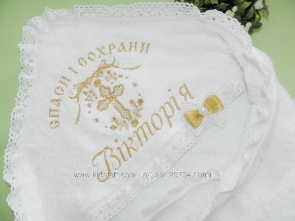 Крыжма именная с капюшоном размер 95*95материал 100% хлопок махра натуральная с двух сторон хорошо впитывает воду что очень важно при крещении ребенка.