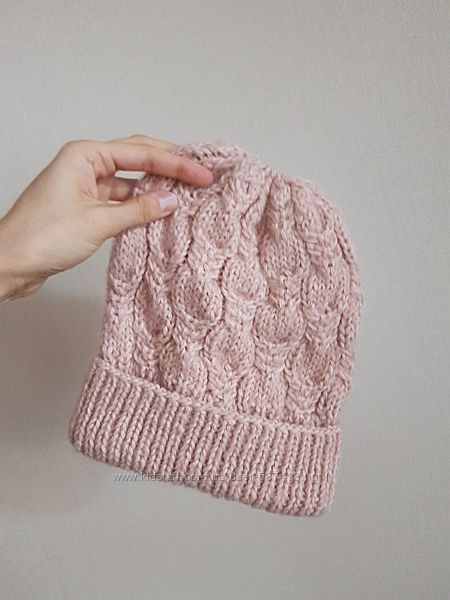 Вязаная шапочка ручной работы пудра пушистая распродажа наличия