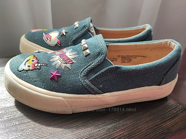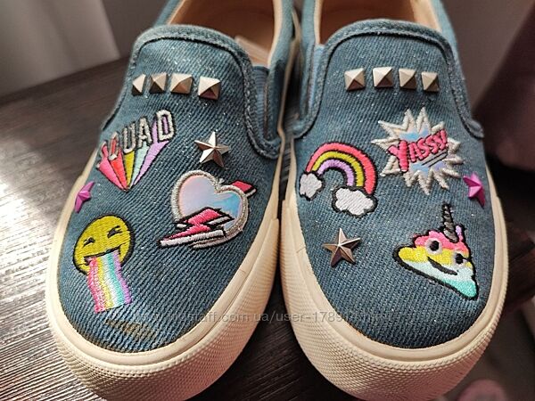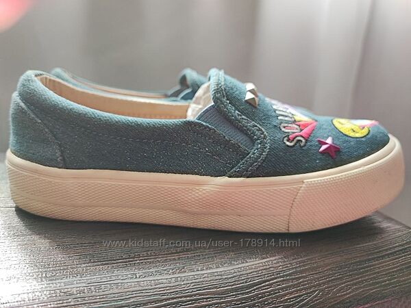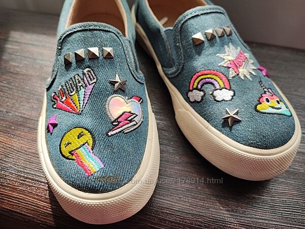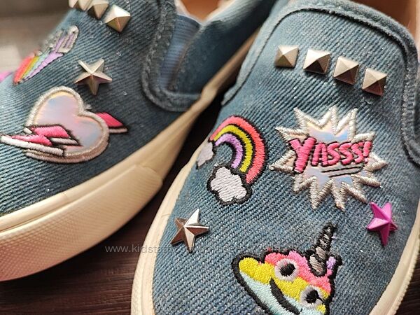 Мокасины от Childrens Place. Размер 1 US По стельке 21 см. Подойдут на среднюю и узкую ножку. Джинсовая ткань украшена яркими нашивками. Внутри тканевые. Очень хорошее состояние. Цена 150 грн.