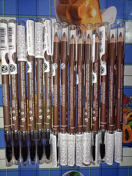 карандаш для бровей пепельный ив роше, оригинал, франция, оттенок 02, код товара 54635и карандаш шатен оттенок 03, код товара 54881