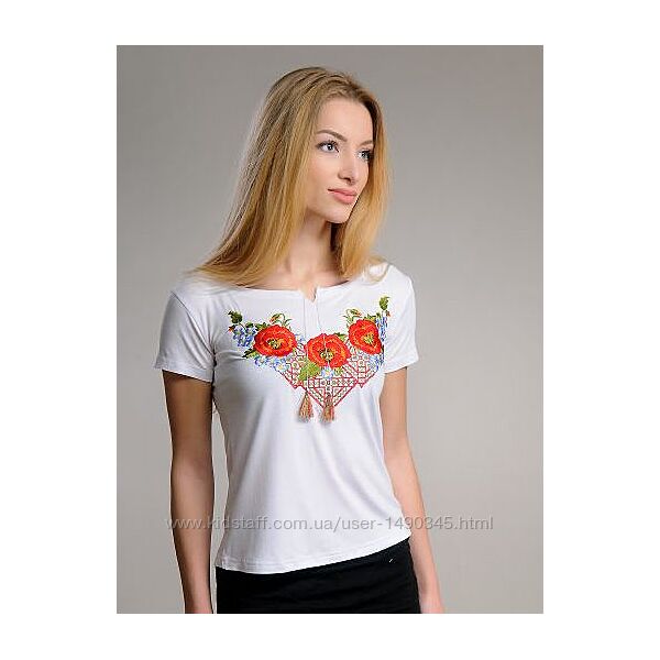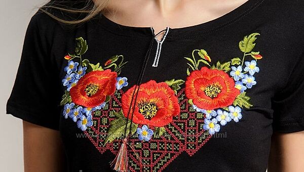 Жіночі вишиті футболки оздоблені яскравим квітковим візерунком на білому або чорному тлі. Машинна вишивка, короткий рукав.Тканина: трикотаж .