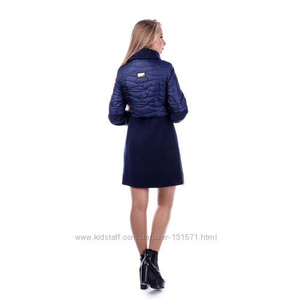 Новинка 2023 года! Шикарное кашемировое пальто + комбинированое стеганой плащевой тканью. Цвета:Темно-синий-44,48,50