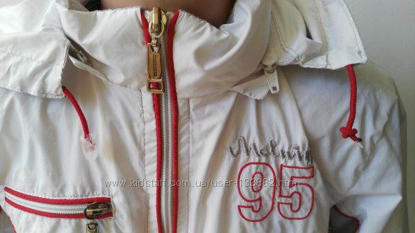 В идеальном состоянии, только потеряли капельку на утяжке капюшона.(на фото показано), все остальное без будь каких дефектов. на худенького мальчика.Замеры: Длина - 47см. ПОГ- 38см длина рукава от плеча - 38см, от шеи- 48см. Капюшон съемный.