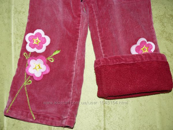 Утепленные вельветовые штаны на флисе. На девочку 2-3 года. Состояние хорошее.Длина 46 см, шаг 28 см, ширина пояса 21 см, ширина попы 26 см.