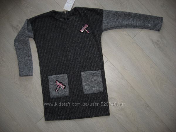 Очень красивое платье-туника, , Breeze,модный цвет этого сезона, вставки под кожу, 2 кармашка, 95%коттон,5%эластан.