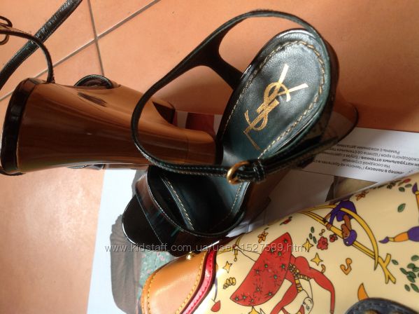 YSL туфли босоножки 38 р кожа дерево Оригинал