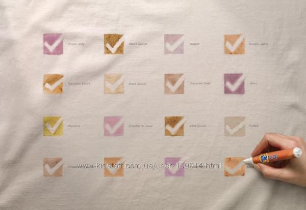 Производитель настаивает , что пятновыводитель хорошо работает с пятнами от: