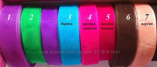 (фото №6) О рганза 2,5 см (малиновая, персик, фиолетовая, зелёная, коричневая, бирюза) = 2 грн./метр.