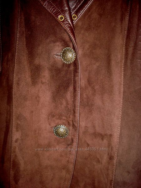 Коричневая, замшевая куртка, есть пояс. Верх в идеальном состоянии, замш не заношен и не затерт, а на подкладке есть нюансы, которые можно исправить в ателье. Фото нюансов вышлю по желанию. На наш размер 48/50. Замеры: От плеча к плечу по спинке 45 см; ПОГ 52 см; ПОТ 48,5 см; Длина рукава 65,5 см; Длина пиджака по спинке 60 см. Без торга.