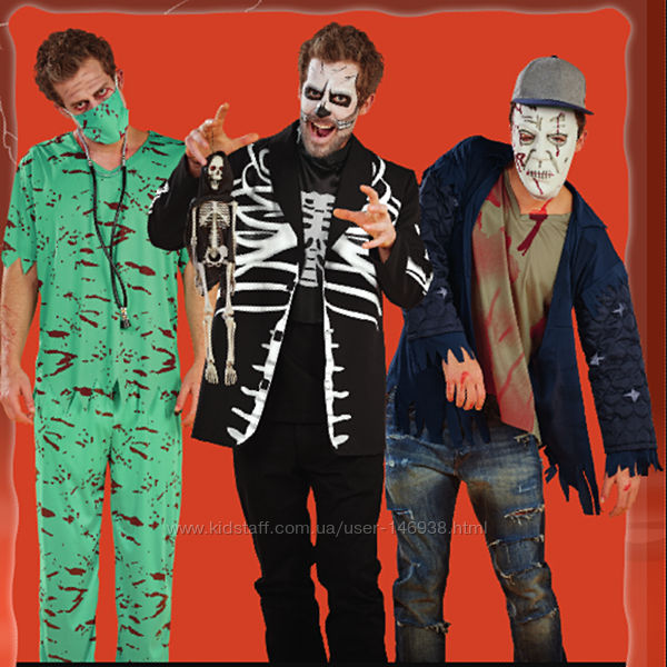 Подробное описание: Карнавальные костюмы для мужчин зомби, скелет, дракула, врач