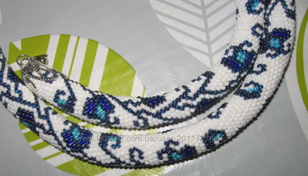 Доброе время суток!!Представляю Вашему вниманию бисерный комплект - жгут и браслет "Гжель" из чешского бисера Preciosa, связанный крючком.