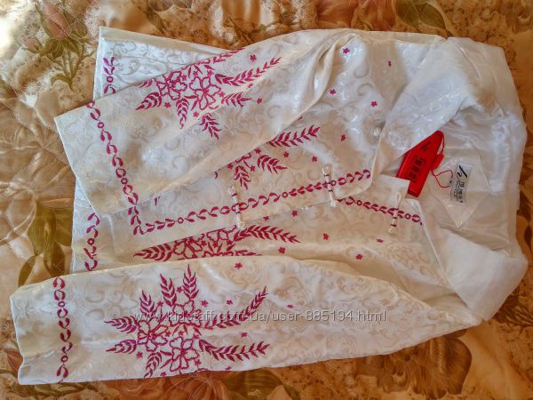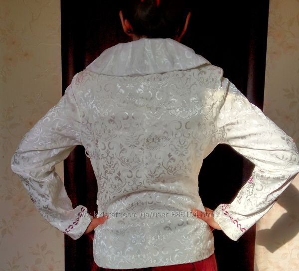 Продам очень красивый праздничный пиджак с вышитыми узорами. Застегивается на китайские пуговицы и маленькие кнопочки (капроновые кнопки видно на фото, я специально их не застегнула), пиджак на тонкой подкладе. Заказывала себе на праздник, но посылка опоздала, купила другую вещь. Размер М, подойдет и на S. Замеры по запросу. В Запорожье возможна личная встреча с примеркой. Перешлю за счет покупателя, отвечу на любые вопросы. Возврата, торга нет. Анна 050 484 84 39Другие объявления продавца