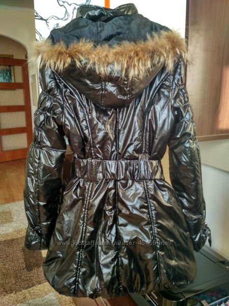 Красивая и теплая Классная удлиненная демисезонная куртка c капюшоном размер LКурточка на молнии, сверху застегивается на кнопки. Капюшон с мехом, отстегивается. На талии пояс, спереди 2 кармана. 100% полиестер. Рукава сделаны очень красиво - сверху присобраны резиночками, снизу присобираются застежечкой типа поясочка. Куртка без дыр-пятен, единственный минус - немного стерся цвет собачки на молнии, но ее не видно, т.к. сверху еще закрывается кнопками, в остальном все хорошо.Замеры: