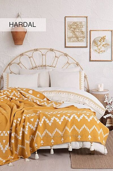 Набор из вареного хлопка с вышивкой и красивым теплым пледом с кисточками