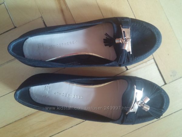 Балетки черные Atmosfere 36 размер,но сильно маломерят-по стельке 22 см.Искусственная замша типа велюр.Обули 1 раз-на 1ое сентября-не обратили внимание,что такие маленькие...На ножке очень хорошо смотрятся,аккуратно.Отлично для сменки в школу.Отправлю по Украине.Оплата на карту или наложенным платежом.Возврата нет.