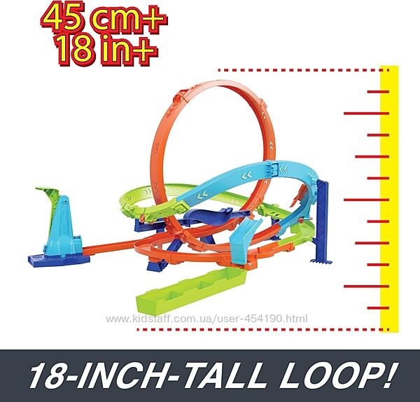 Автотрек Хот Вилс Испытания гиперпетли Hot Wheels Loop Cyclone Challenge HTK16Исследуйте силу и скорость с невероятно динамичным набором Испытания гиперпетли Hot Wheels! В этом захватывающем наборе есть два варианта игры: запуск машинки петлей-бумерангом для повторных гонок или прыжки и зарабатывание баллов.
