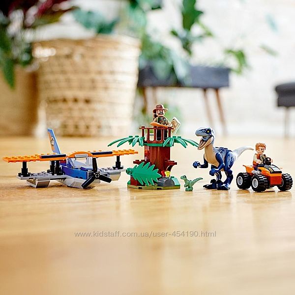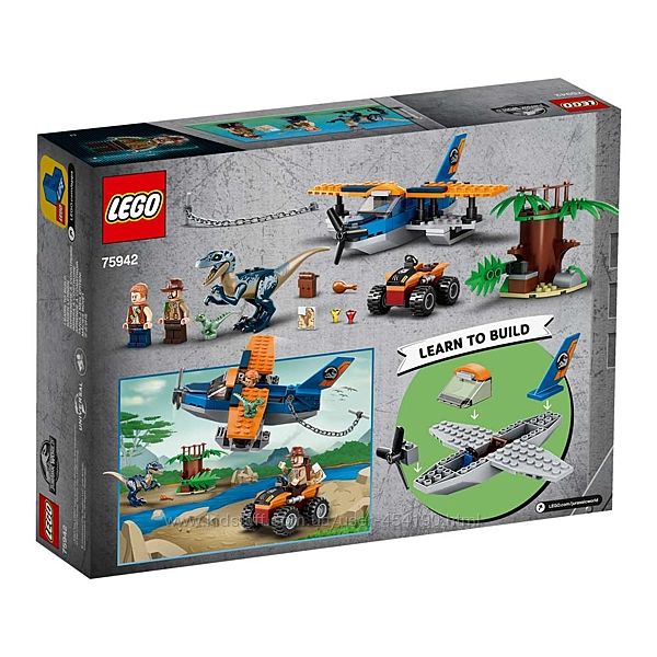Конструктор LEGO Jurassic World 75942 Велоцираптор спасение на биплане Лего Джурасик ВорлдСинджин Прескотт подошёл слишком близко к гнезду, и теперь за ним гонится динозавр! Синджин пытается скрыться в джунглях на своём внедорожнике, но разъярённый Велоцираптор вот-вот схватит его. Скорее, лети к нему на помощь на крутом биплане Оуэна Грэди. Сбрось цепь, подожди пока Синджин ухватится за неё и как можно скорее уноси его в безопасное место! А потом помоги Велицираптору ухаживать за её детёнышем Дельтой и яйцом в спокойной обстановке.